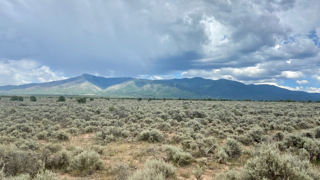 I see more how the trip has been an education, one into the worlds of geography, geology, climate, Native peoples, animals, nature and culture. Certain colors really do correlate to a region, a certain vibe really is prevalent to a city. New Mexico really took me by surprise. It is steeped in a culture that has embraced its Native Indian roots, and that feel is prevalent in the way people treat each other, as well as apparent in the local artwork. There is a sense of reverence that permeates the air. Perhaps this is the vibe I am picking up on. Fields of wild sage growing in busheled clumps, cover expanses of the parched land that backs up to mountain ranges. The play of colors, shadows, and shapes seemed to consistently light up the background of any vista we drove or walked along. It was indeed a painter’s paradise. It’s no wonder so many artists and hippies flocked to the area.