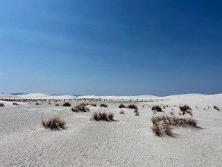 The next afternoon we did the drive through White Sands National Park and had our minds blown. We were going through what was once an ancient lake bed that had over the millennia formed its leftover gypsum minerals into actual selenite crystals becoming a massive expanse of shimmering white sand dunes. They are the largest gypsum dunes in the world, and visible from outer space. The vibration was high and so were we.