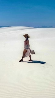 The next afternoon we did the drive through White Sands National Park and had our minds blown. We were going through what was once an ancient lake bed that had over the millennia formed its leftover gypsum minerals into actual selenite crystals becoming a massive expanse of shimmering white sand dunes. They are the largest gypsum dunes in the world, and visible from outer space. The vibration was high and so were we.