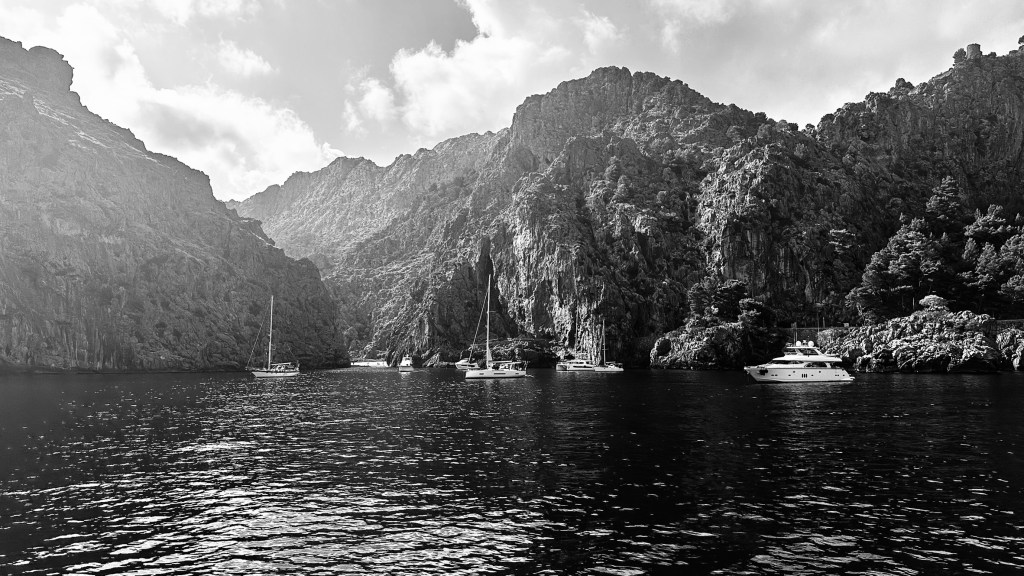 Cooking for ten has its challenges, but all so easily soothed by the view out my galley window, gazing onto the beauty that is Mallorca. I experienced her landscape like never before, marveling how each corner and cala (cove) of her showed off her unbelievable coast. All of it was a feast for the eyes…dry rocky scapes, lush, leafy dark-green forest, terracotta towns rising from the mountains’ girdle, sea-stacks molded and carved over time, sapphire and emerald coves cooing to be discovered…